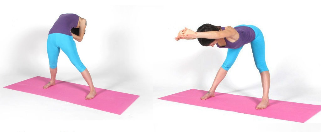 - Stai în picioare, tălpile depărtate pentru o bună stabilitate, ții spatele drept. În prima parte a exercițiului pui mâinile la spate în talie și înclini trunchiul înapoi, spre spate, apoi revii la poziția inițială. În partea a doua a exercițiului apleci trunchiul înainte, la orizontală, întinzi brațele și ții palmele apropiate. Repeți exercițiul de 4 ori.